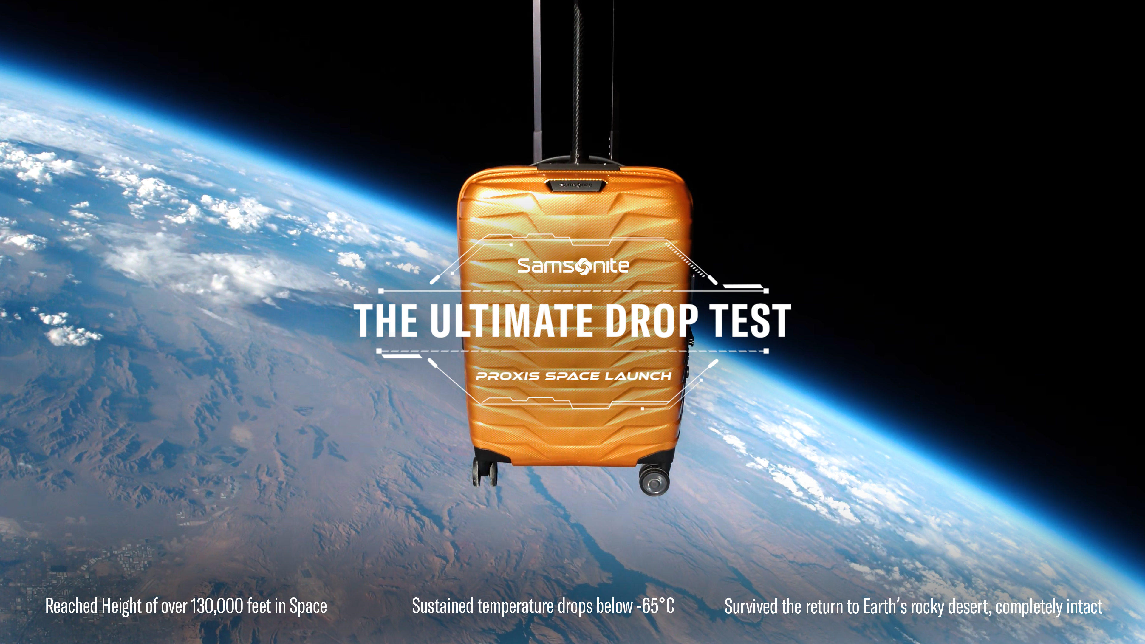 Samsonite takes travel innovation to new heights with Proxis™ Space Launch by sending its lightest-ever suitcase, Proxis™, to the edge of space reaching a height of over 130,000 feet. Featuring Samsonite’s groundbreaking Roxkin™ outer shell, Proxis™ returned to Earth fully intact, demonstrating Samsonite's commitment to both durability and forward-thinking design.
